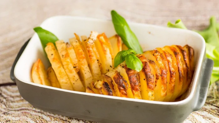 A sütőben sült krumpli-harmoska látványos étel, amely mind a mindennapi, mind az ünnepi asztalt díszíti.